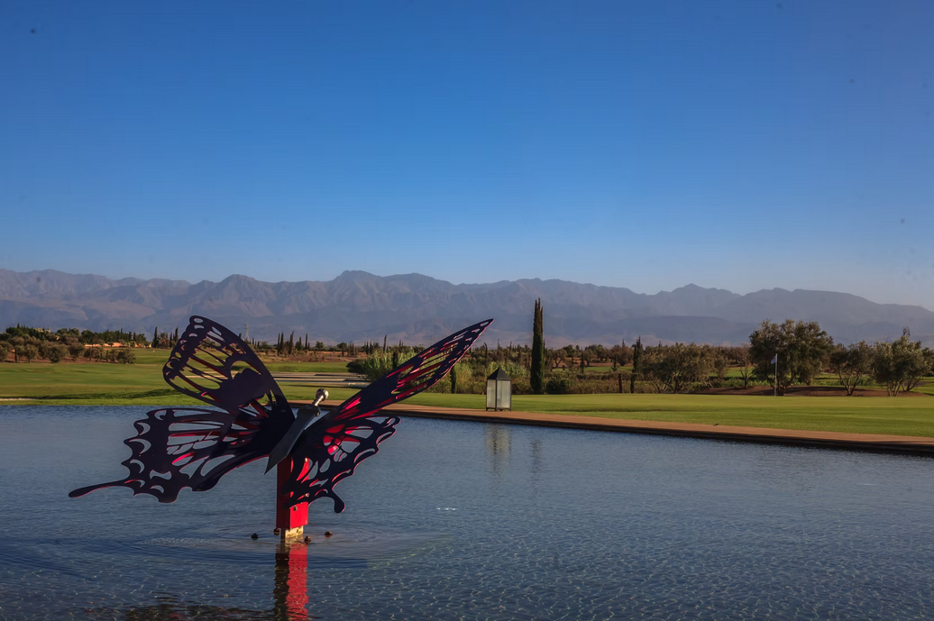 The par-72 course measures around 6,569 meters (7,184 yards), offering a layout that caters to golfers of all abilities. Elevated tees and greens, carefully placed bunkers, and water hazards throughout the course introduce strategic elements and shot variety. The finishing 18th hole is especially notable a long par-5 featuring both water and sand challenges, requiring precision and bold decision-making. Golf Al Maaden provides a high-caliber golfing experience in a tranquil, landscaped setting with views of the Atlas Mountains, making it a standout destination for golf in Marrakech.