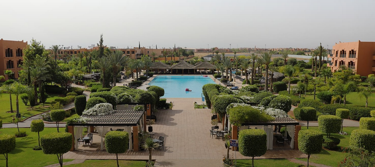 Dining options include La Terrasse de l’Insensé with buffet-style meals, the gourmet Moroccan restaurant Saoussane, the Italian restaurant Cinecittà, and a poolside Snack Pool Bar. The resort’s O-SPA by Kenzi offers treatment rooms, steam rooms, a sauna, a gym, and a relaxation pool. Additional amenities include a large outdoor pool, tennis courts, a fitness center, and a business center with meeting facilities. The hotel provides free shuttle service to Marrakech city center, concierge services, room service, and valet parking.
